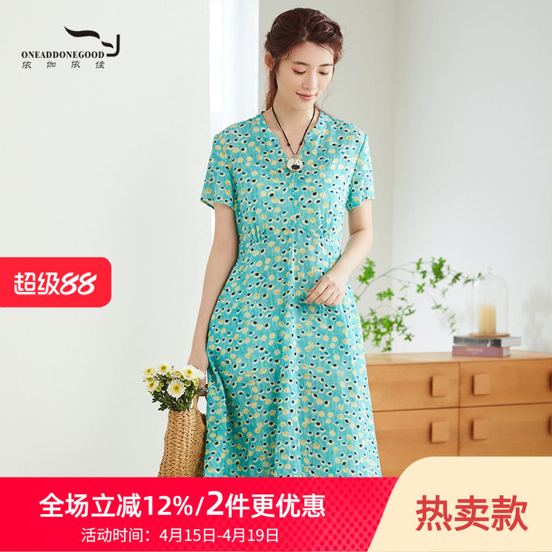 依伽依佳2023夏新品连衣裙女碎花时尚气质文艺修身中长裙ESXL004