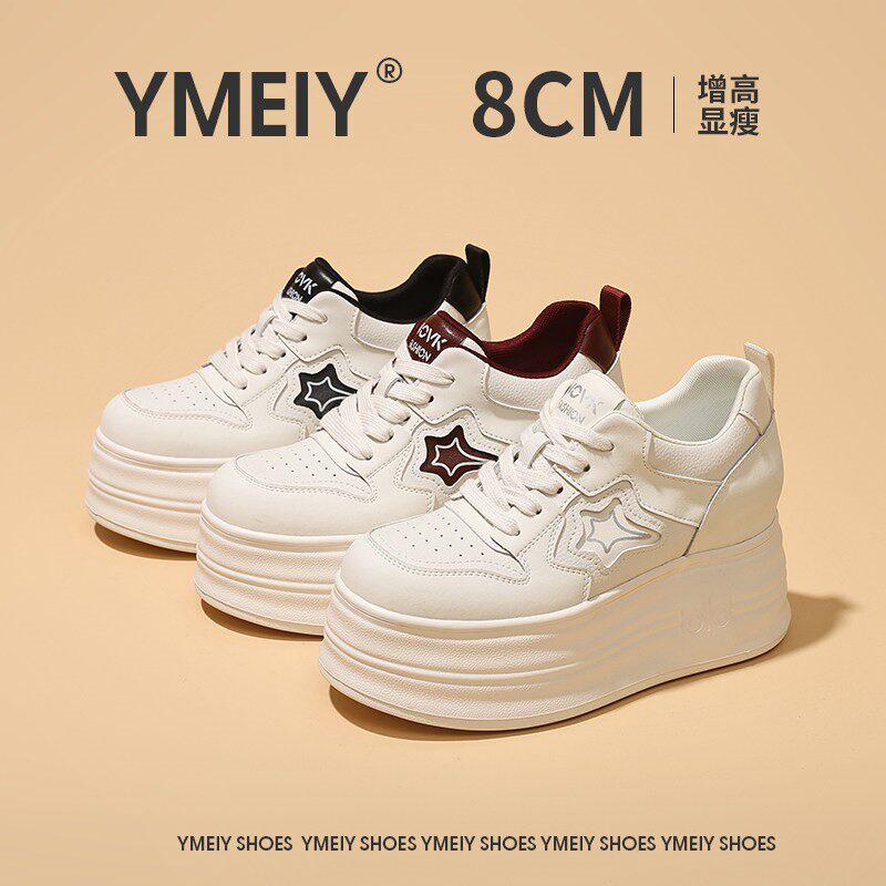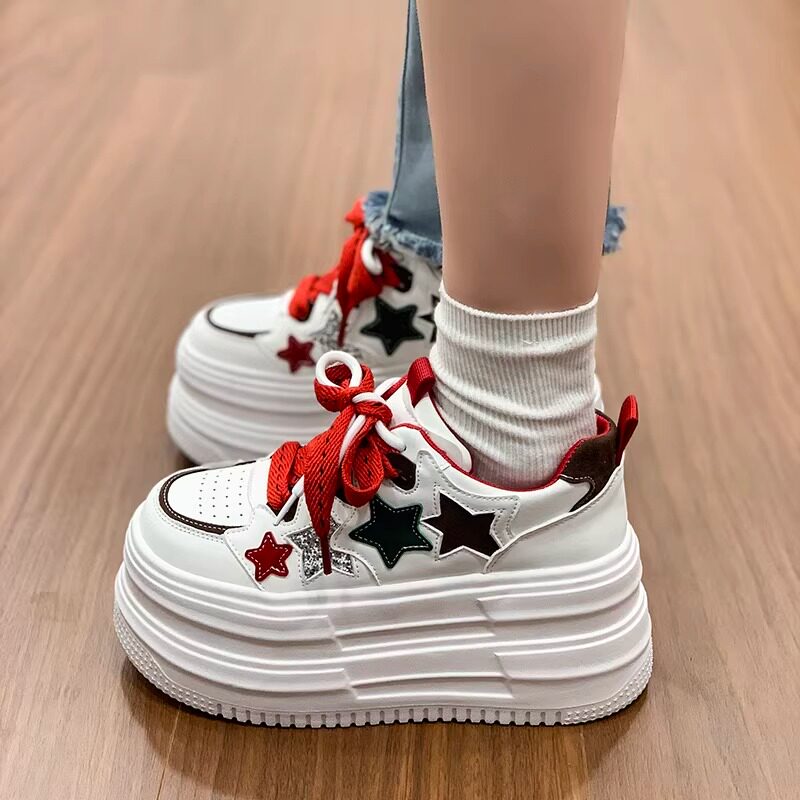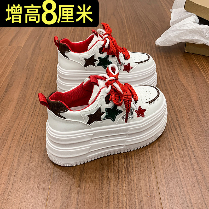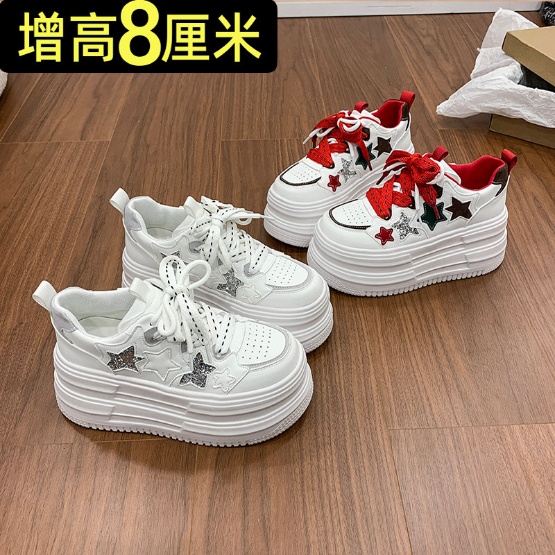 8cm~欧货系带星星厚底松糕经典小白鞋休闲鞋板鞋面包鞋小个子女鞋