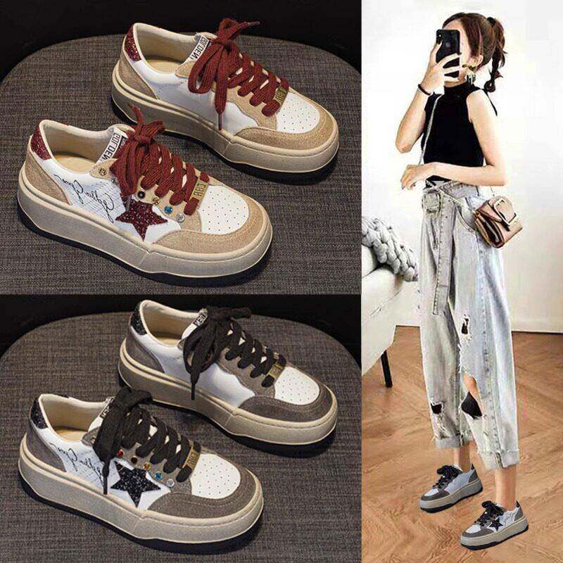 珠利莱2026新款韩版星星拼色厚底板鞋女休闲增高松糕鞋潮流运动鞋