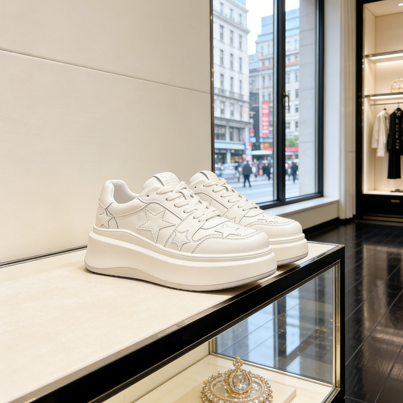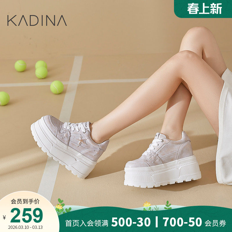 卡迪娜2025年复古星星厚底松糕底增高小白鞋休闲鞋女KWCS250103