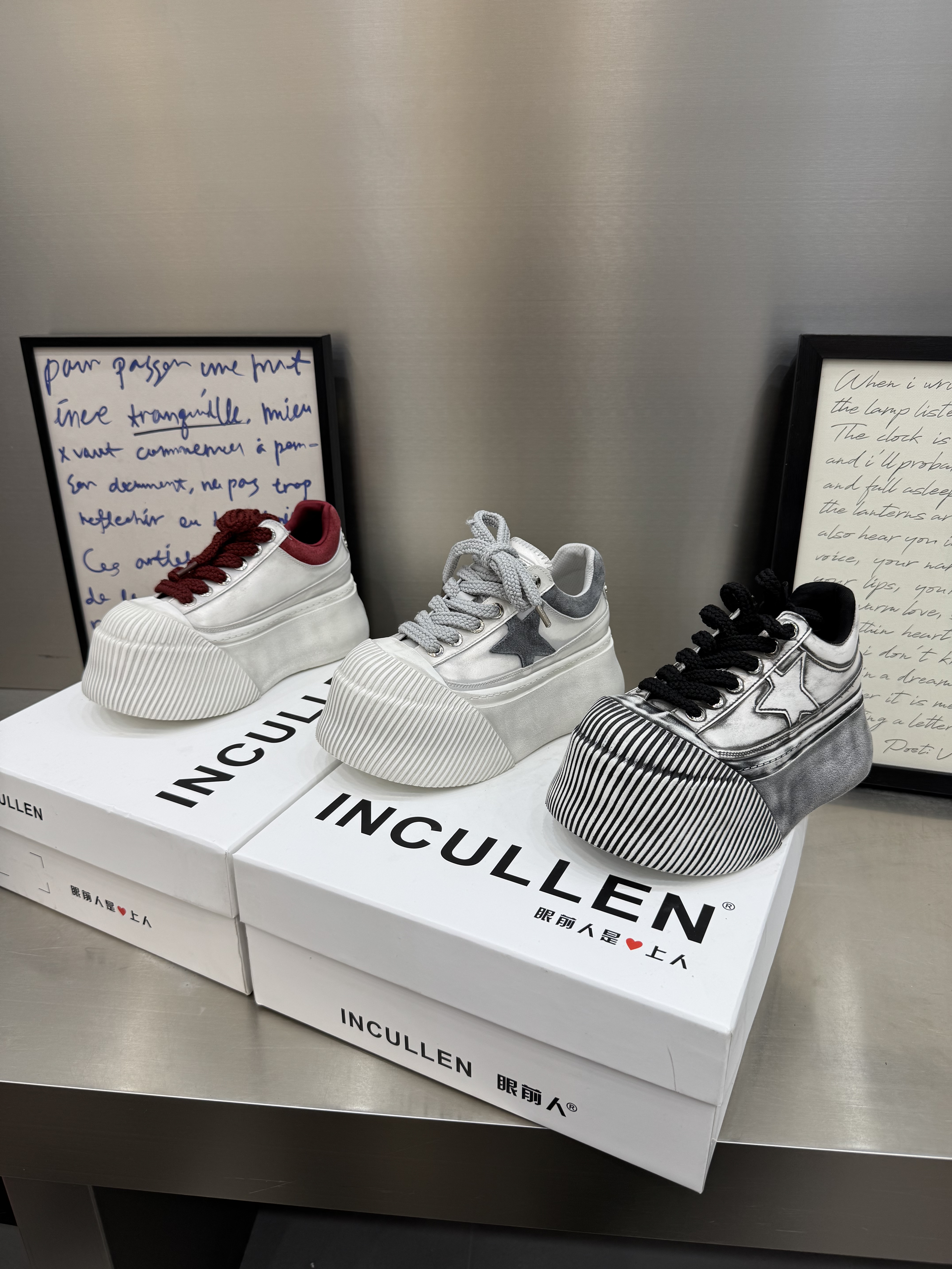 CDF女鞋轻奢时尚秋季真皮百搭松糕鞋厚底增高复古星星休闲鞋板鞋