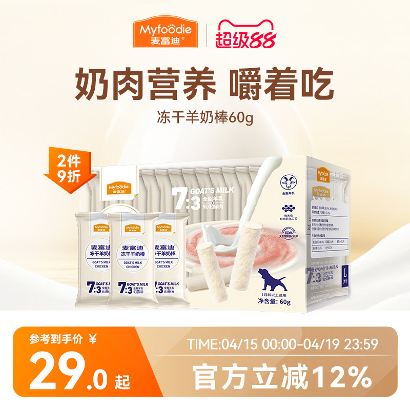 麦富迪狗狗零食冻干羊奶棒宠物零食奶酪棒成幼犬磨牙棒小型犬训练