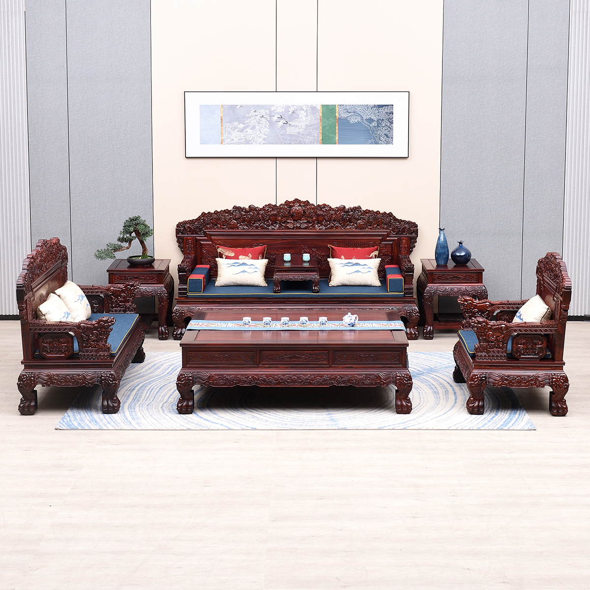 需定制国标红木家具客厅全套印尼黑酸枝红木沙发中式全实木鸿福沙