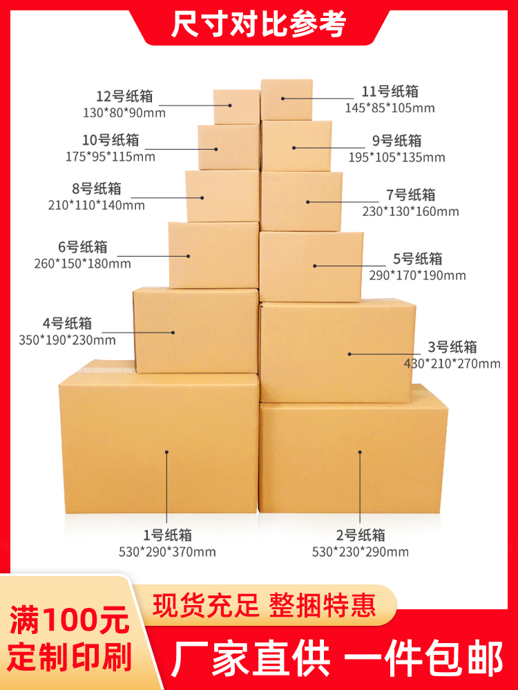 100个/组 纸箱批发淘宝邮政箱快递打包箱搬家包装纸盒定做1-12号