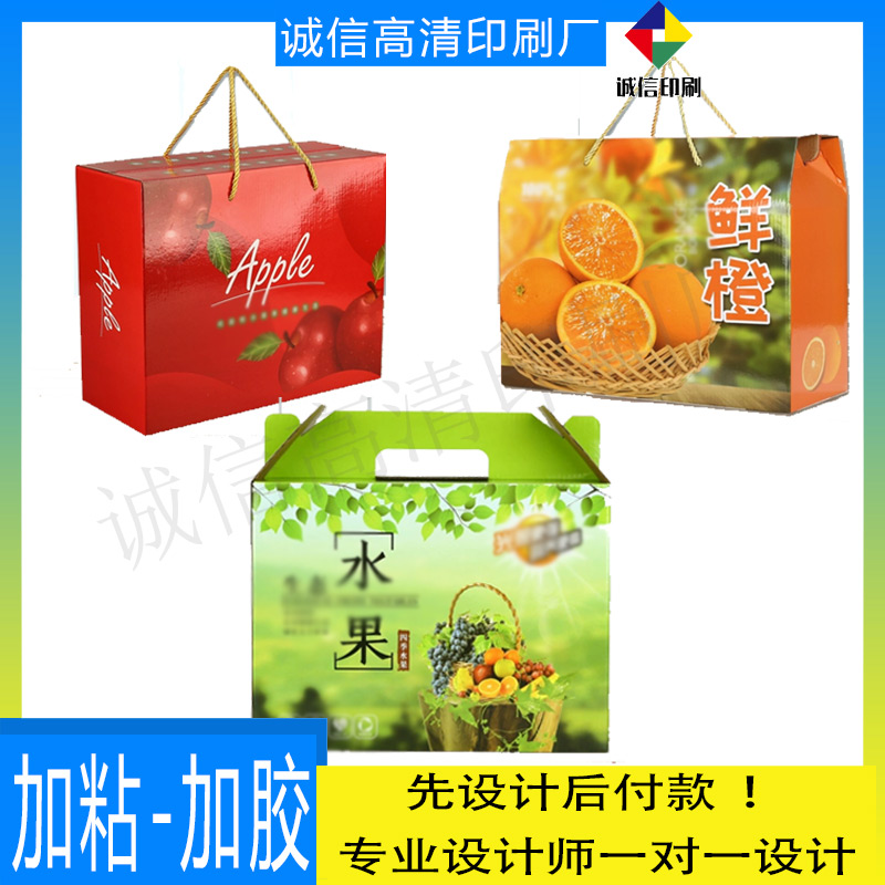 设计橙子水果烫金瓦楞纸手提礼盒印秋月梨烫uv白卡纸包装纸盒定做