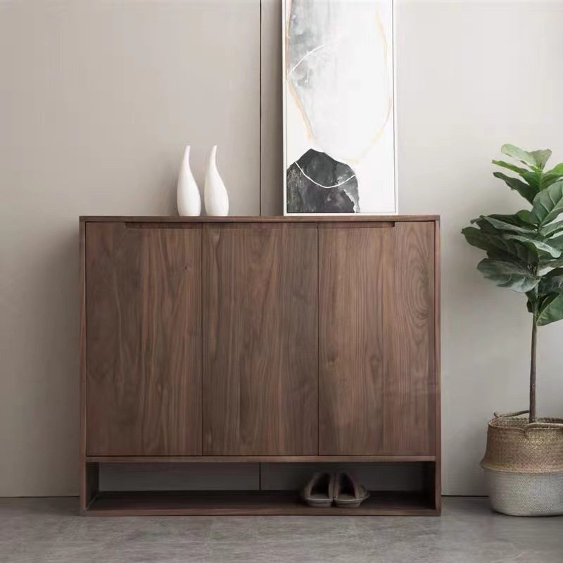 北美黑胡桃木门口入户鞋柜北欧风玄关柜对开门现代简约收纳储物柜