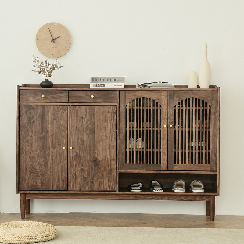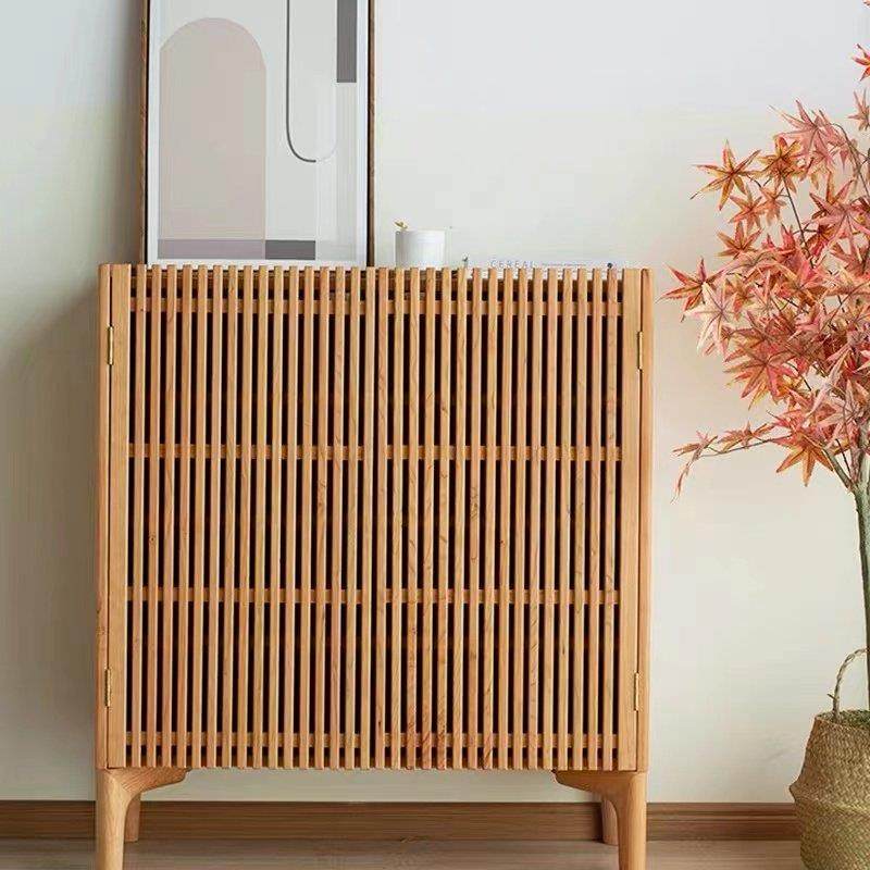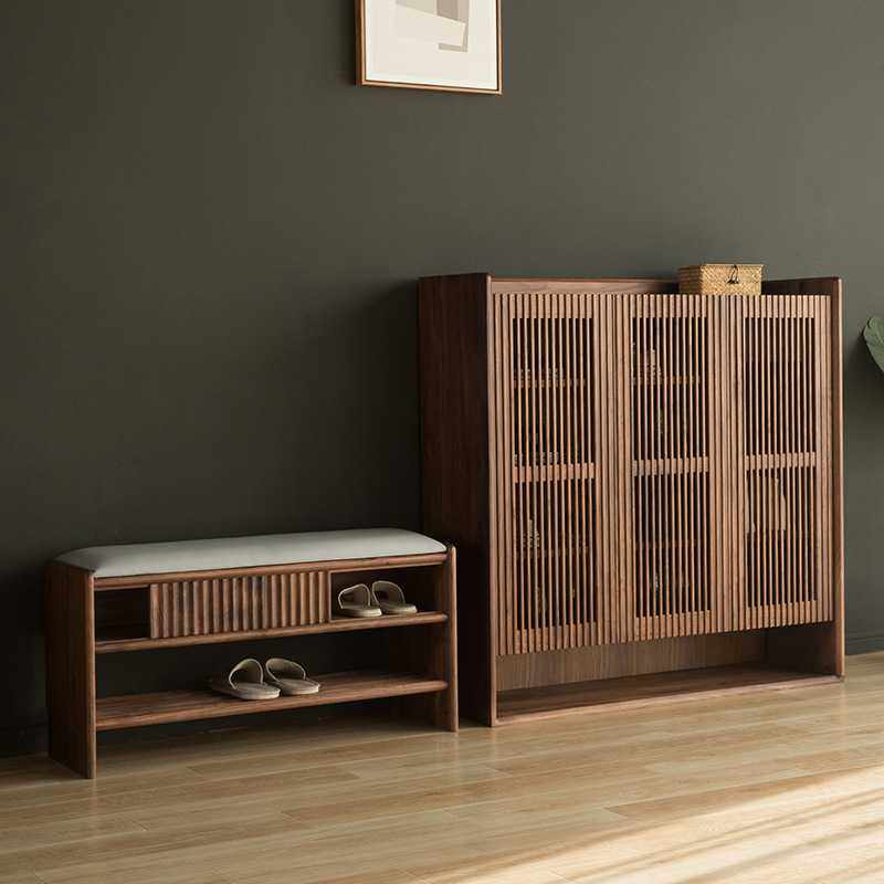 北欧现代黑胡桃木实木入户 格栅玄关柜轻奢简约大容量对开门鞋柜