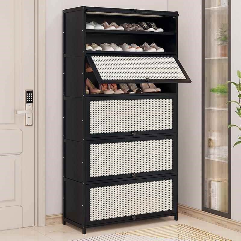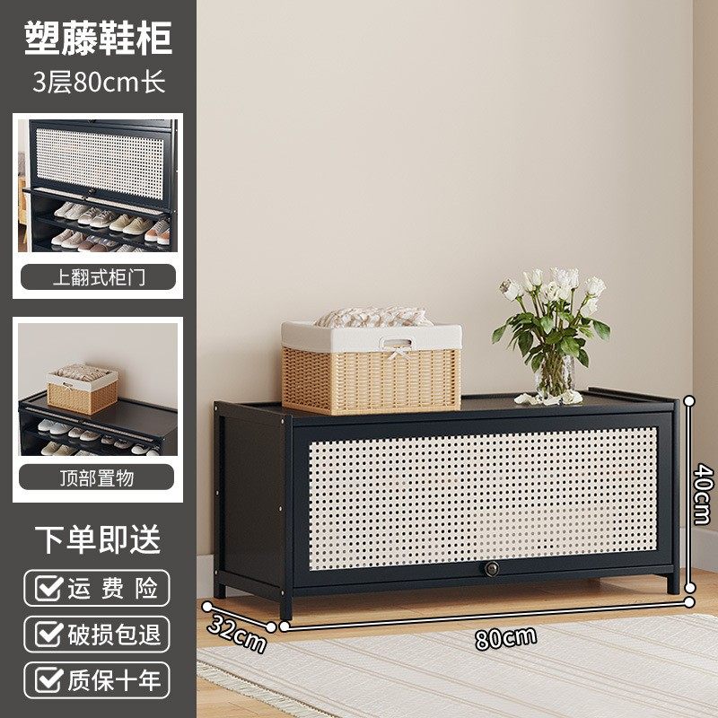 藤编鞋柜对开门现代简约家用一体靠墙入户玄关柜多层防尘鞋架EC21