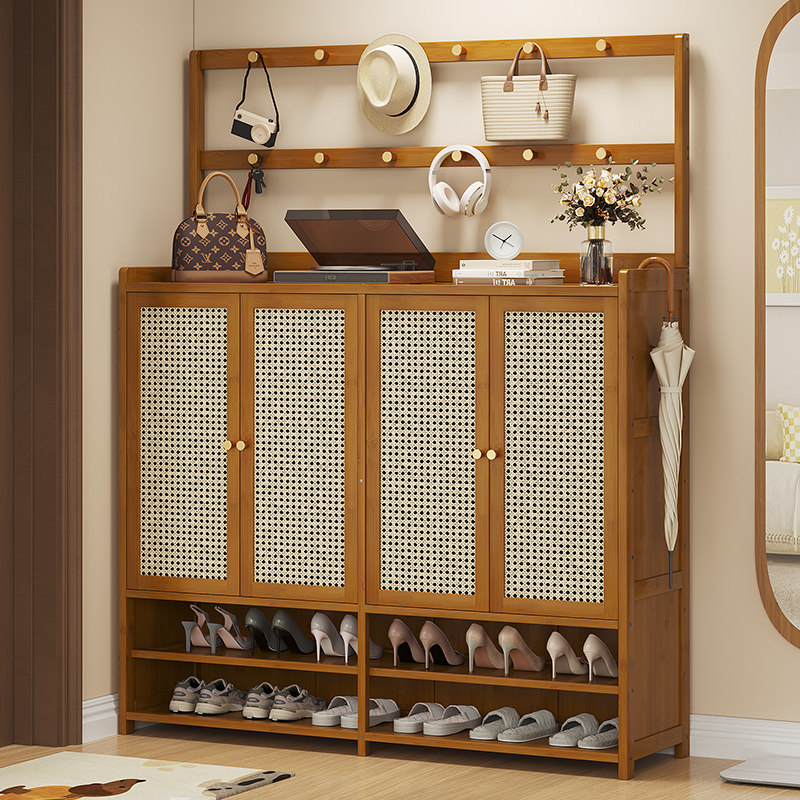 藤编鞋柜对开门现代中式简约家用一体靠墙入户玄关柜多层防尘鞋架