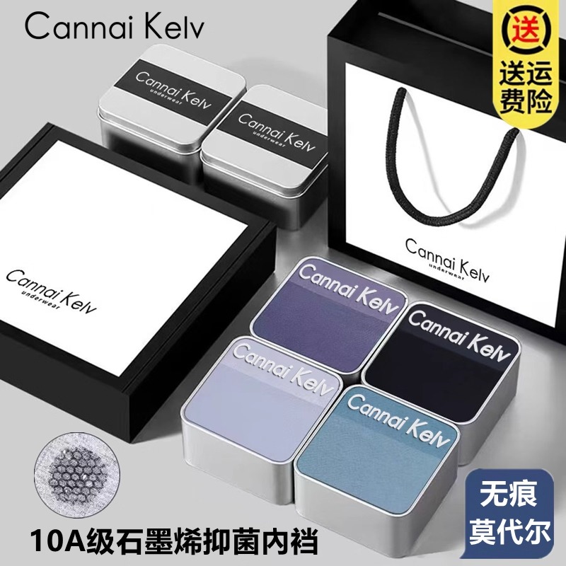 Cavie Keniva男士内裤男抗菌莫代尔纯棉冰丝透气平角裤高档礼盒装