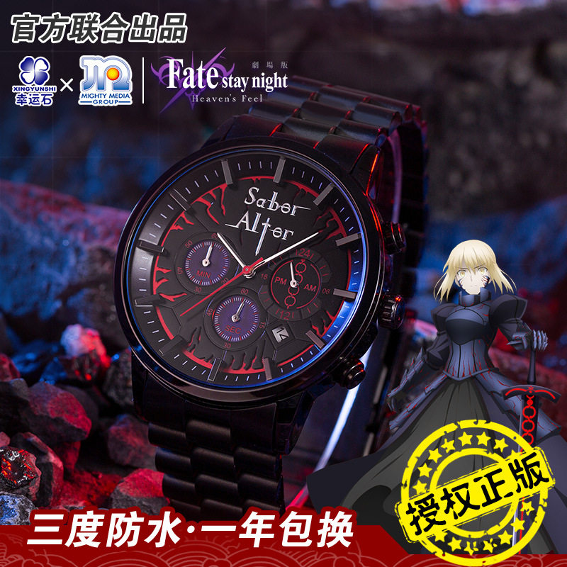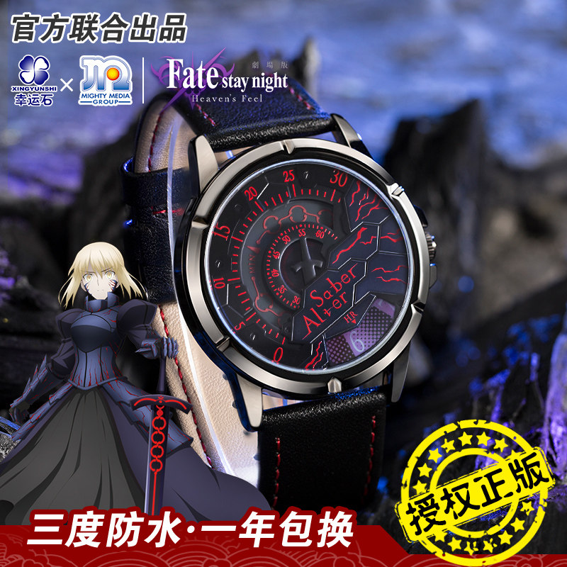 Fate手表 幸运石官方正版动漫周边黑saber alter铠甲组合石英表