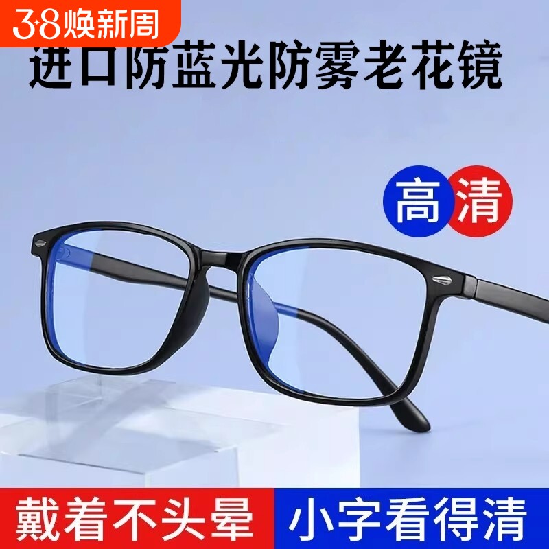 进口镜片防雾老花镜男款高清老人高档品牌中老年防蓝光超轻女眼镜