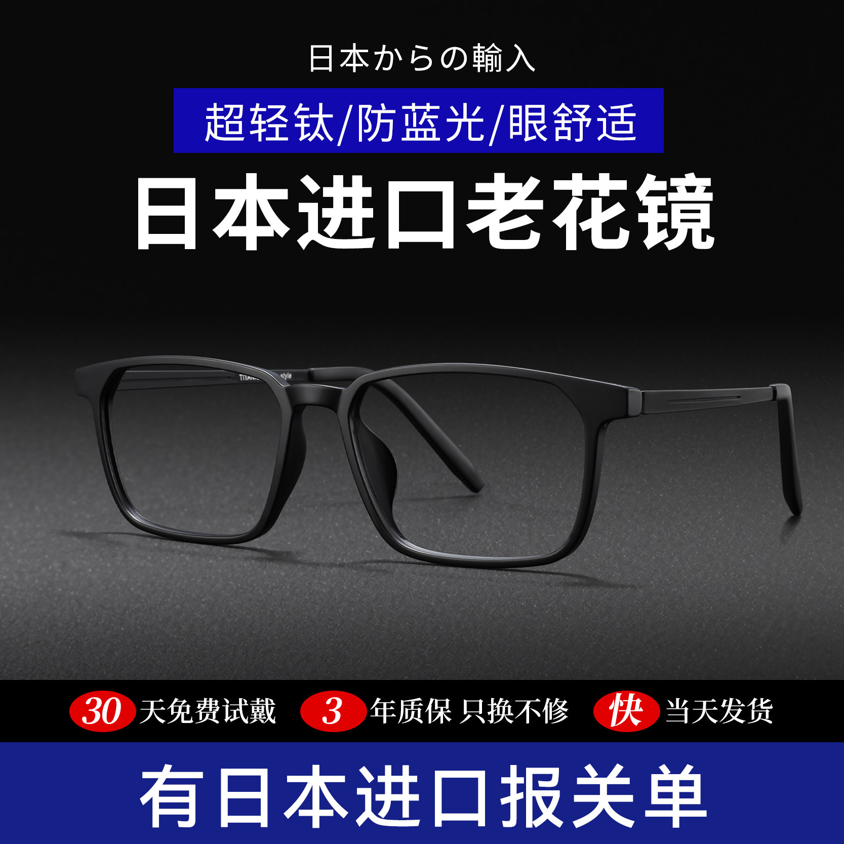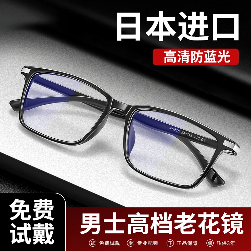 日本进口老花镜男防蓝光远近两用品牌正品高清耐磨高档老视镜定制