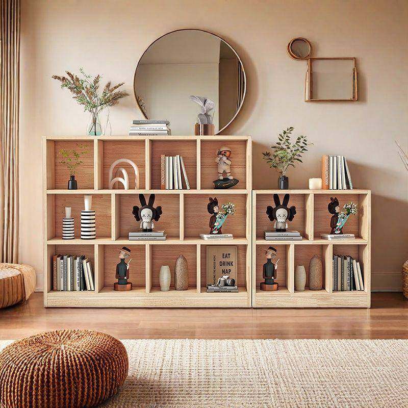 实木书架置物架落地靠墙组合格子柜客厅幼儿园储物收纳矮家用书柜