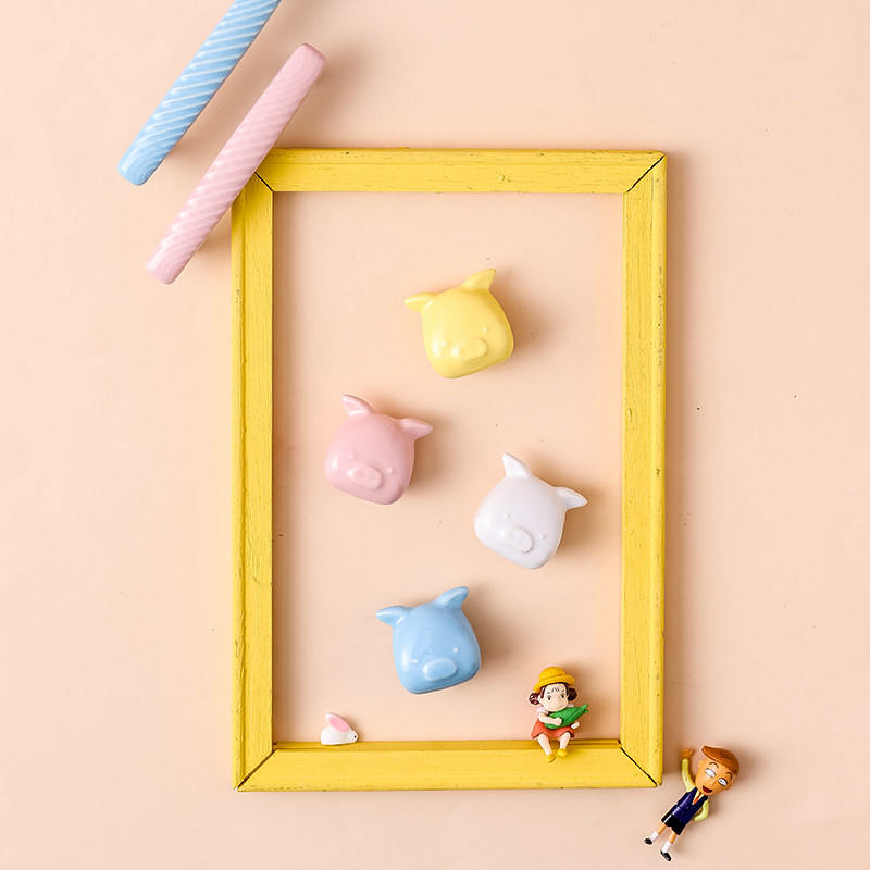 儿童房创意可爱柜门拉手幼儿园柜子抽屉橱柜卡通猪头彩色陶瓷把手
