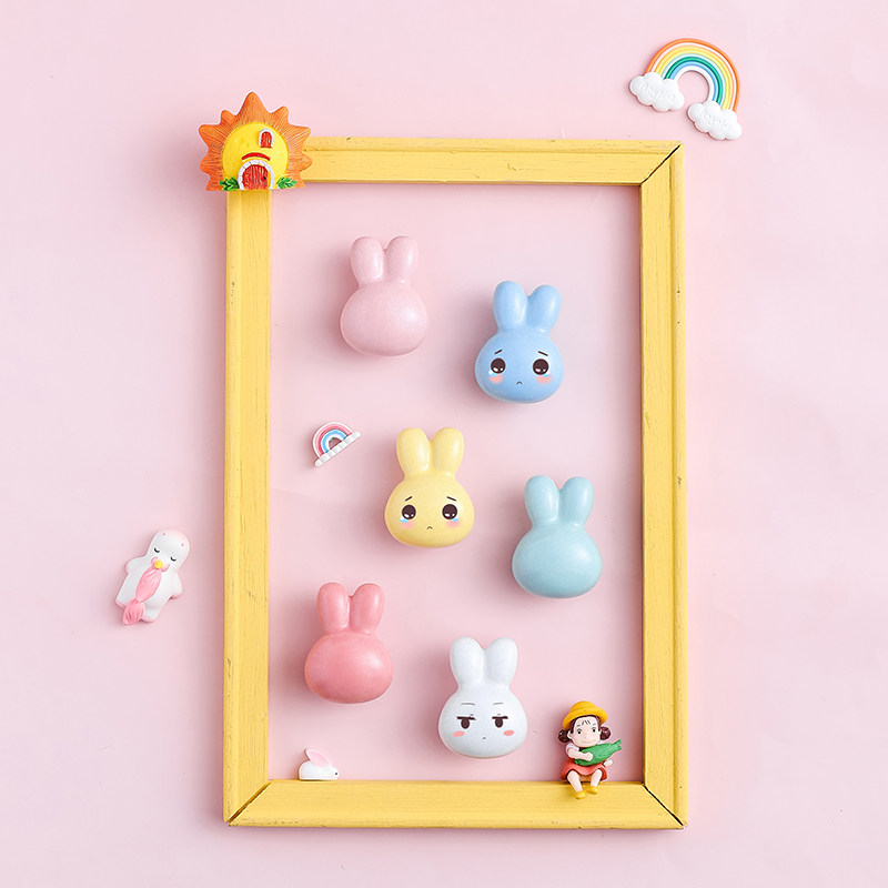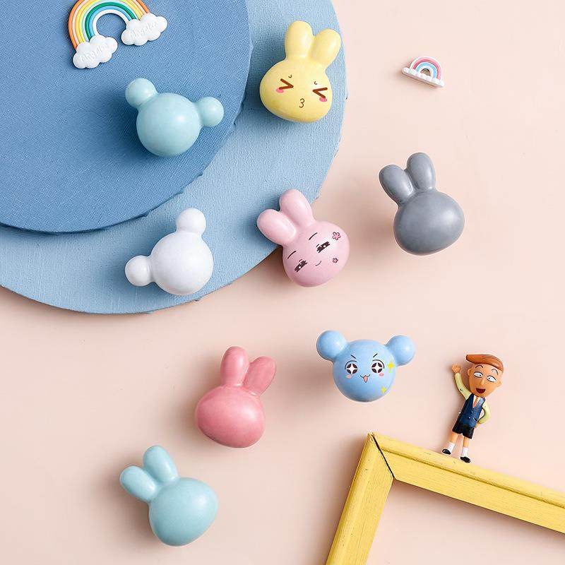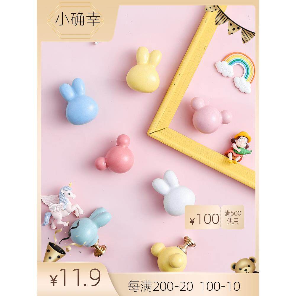 儿童房柜门拉手兔子可爱橱柜抽屉防撞把手幼儿园柜子彩色陶瓷拉手