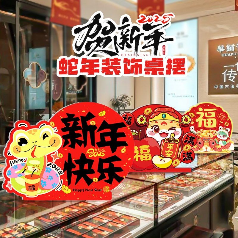 速发202新新蛇年春节5款板摆布学校幼儿园柜台珠宝店铺氛围装饰件