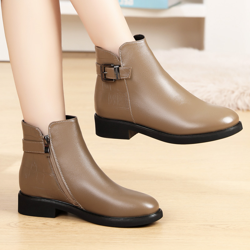 - 真皮平底女鞋短靴
