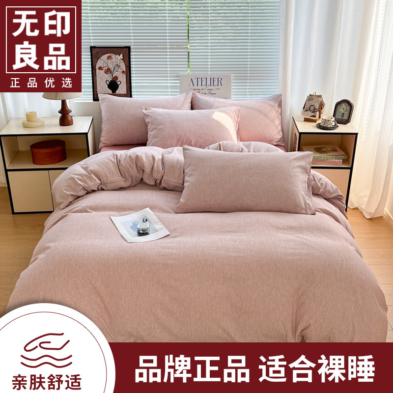 无印良品四件套全棉纯棉100天竺棉床单被套针织床笠裸睡床上用品