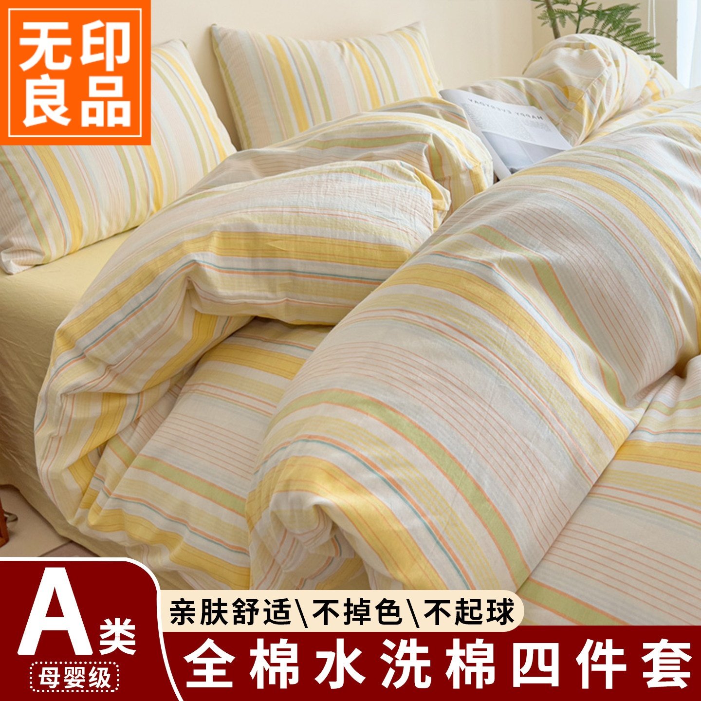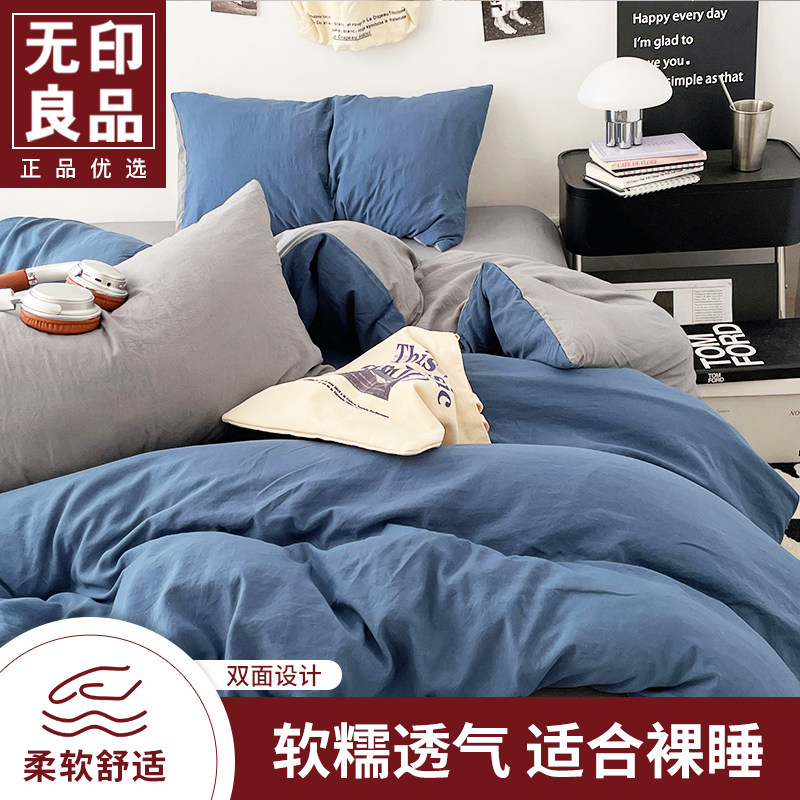 无印良品四件套床上用品全棉100%纯棉简约水洗棉床单款被罩三件套