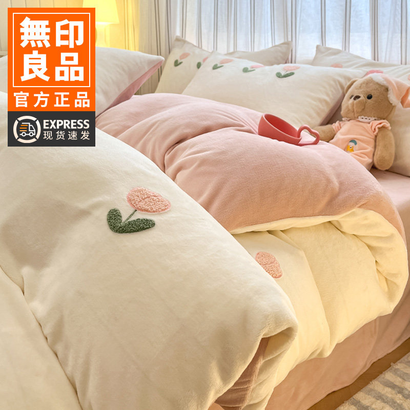 无印良品四件套冬季牛奶绒床上2025新款珊瑚法兰绒被套床单三件套