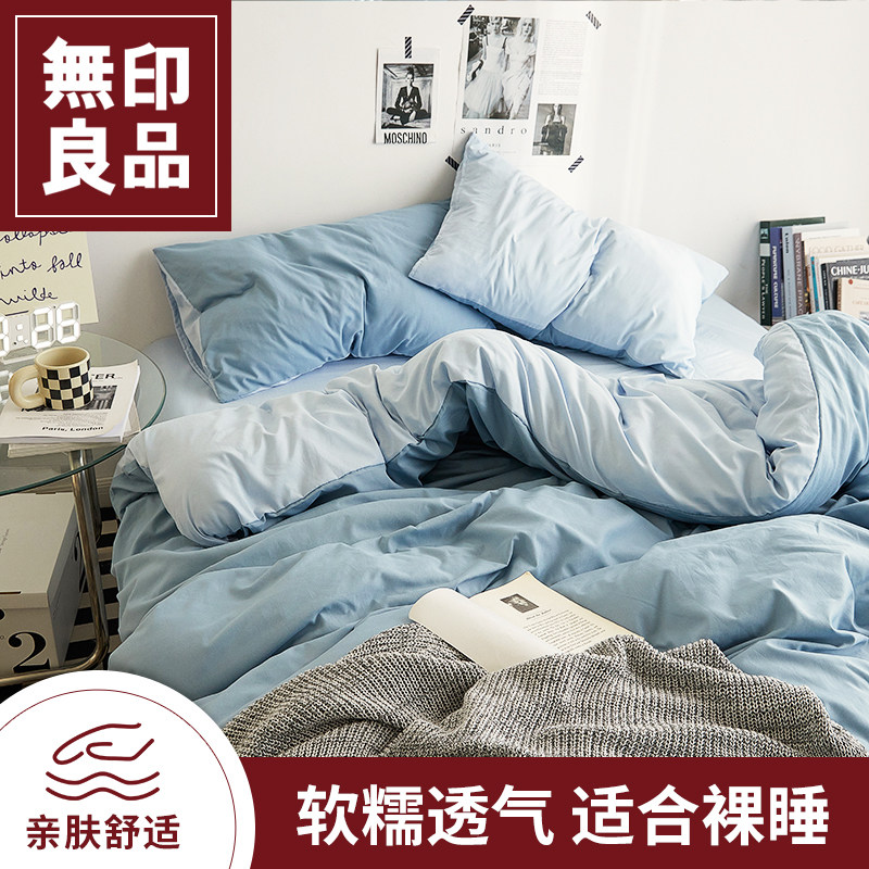 无印良品四件套全棉被套纯棉床上用品春夏季学生宿舍单人床三件套