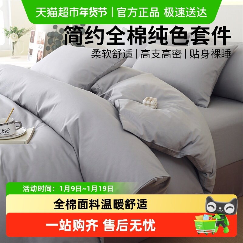 无印良品四件套全棉可裸睡床单被套枕套三件套水洗棉纯色简约纯棉