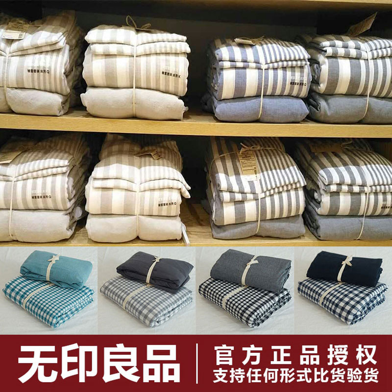 无印良品四件套全棉水洗100纯棉床单被套床笠三件套枕套上床用品