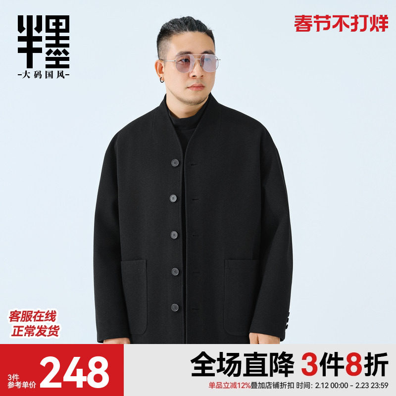 半墨大码男装短款毛呢夹克冬季新款宽松加肥加大胖子新中式外套男