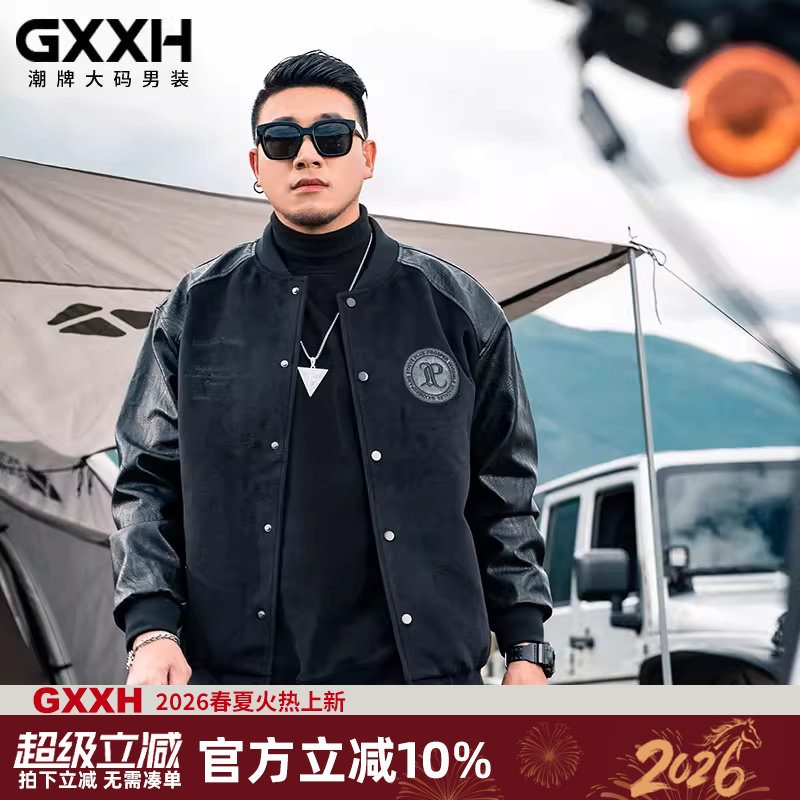 GxxH个性潮牌男装加肥加大号宽松棒球服拼接棉服秋冬美式夹克外套