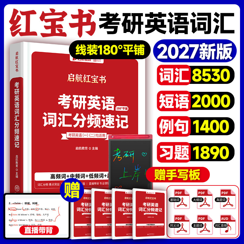 2027考研英语词汇红宝书英语一二红宝书词汇分频速记高频中频低频词短语词汇基础考点重点单词启航红宝书考研英语历年真题词汇