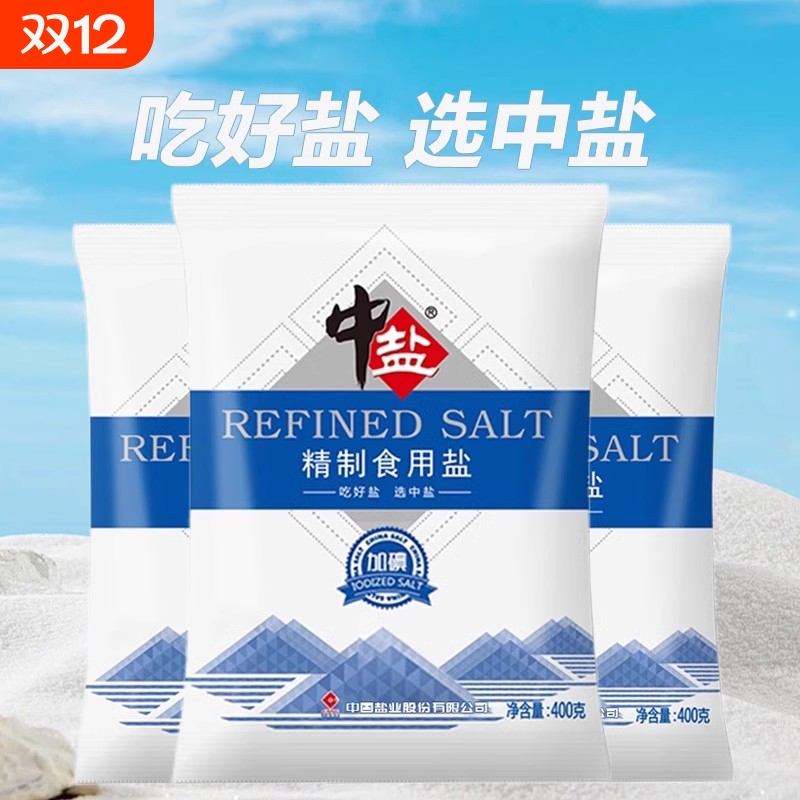 中盐精制食用盐400g加碘/未加碘食盐家用厨房炒菜调味品健康饮食