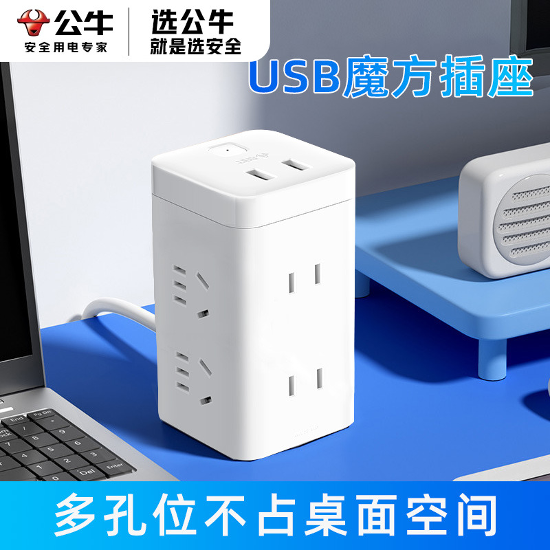 公牛魔方插座带usb接口快充电转换器多功能立式接线板排插板带线