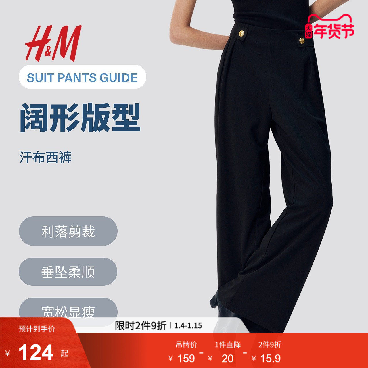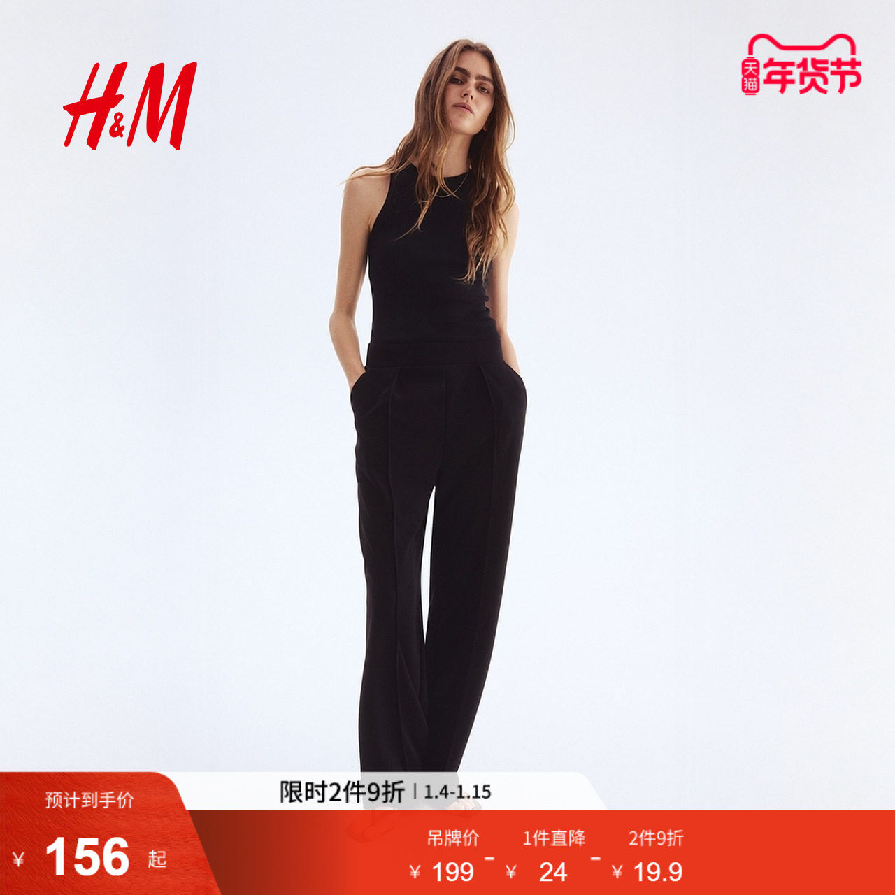 HM女装西装裤冬季通勤高腰显瘦直筒阔腿正装长裤1264836