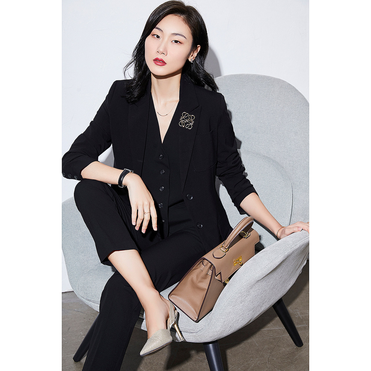 朗姿纯羊毛高级感修身职业正装气质西服外套/西裤2025春新西装女
