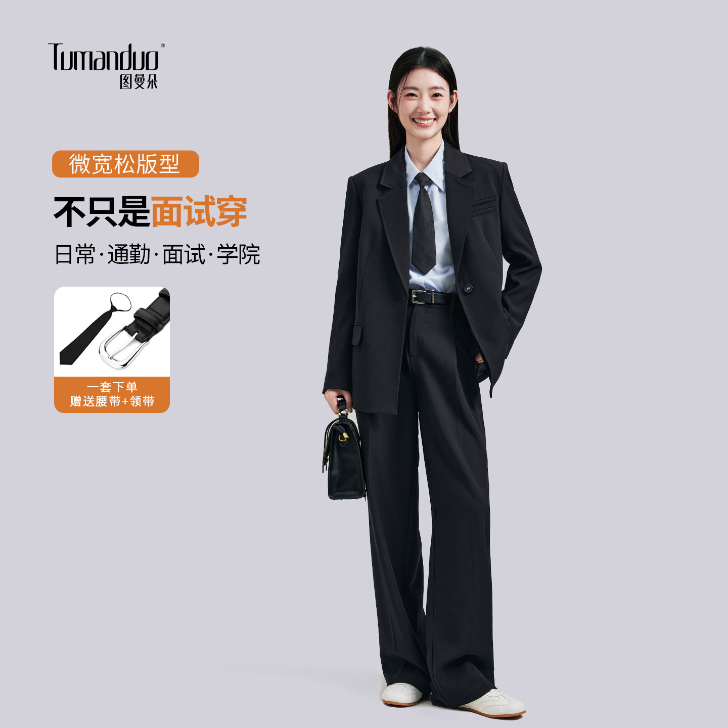图曼朵黑色西装外套女大学生小个子面试正装西服套装西装裤职业装