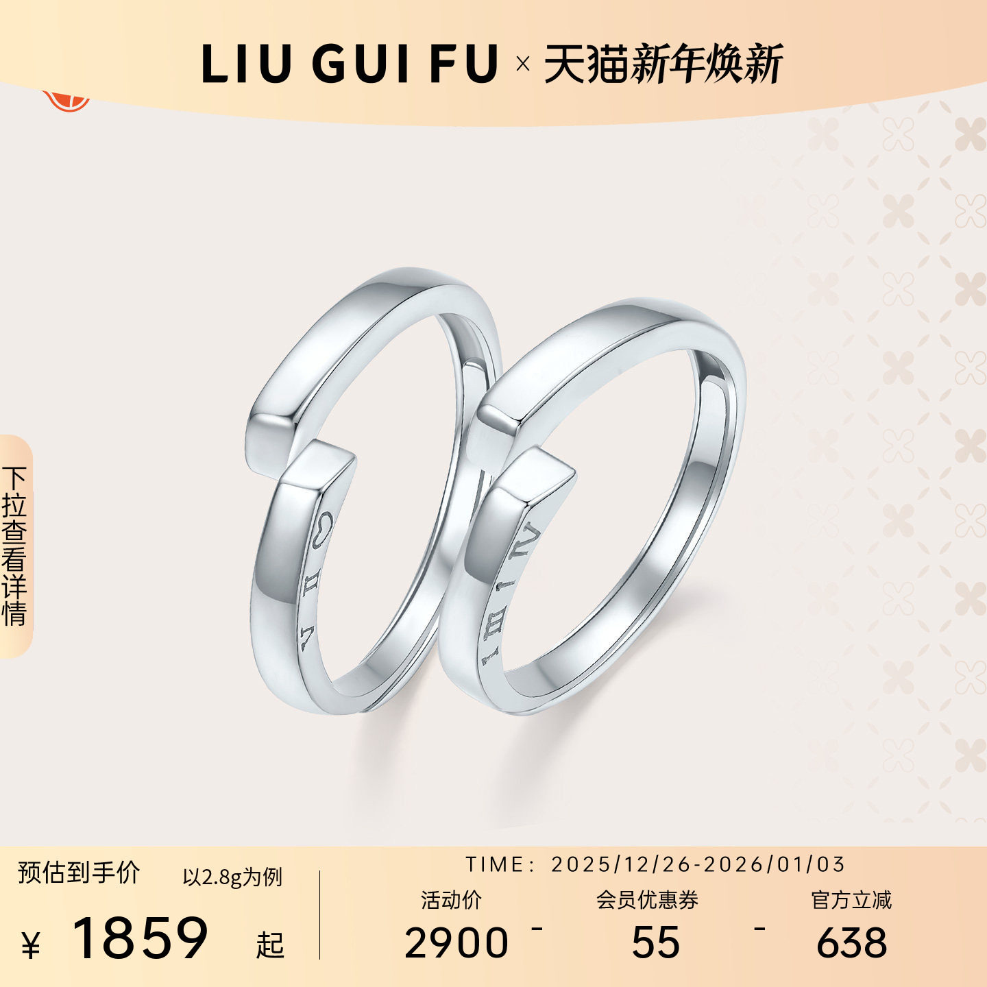 六桂福珠宝pt950铂金灵魂伴侣白金戒指情侣款简约冷淡风男女对戒