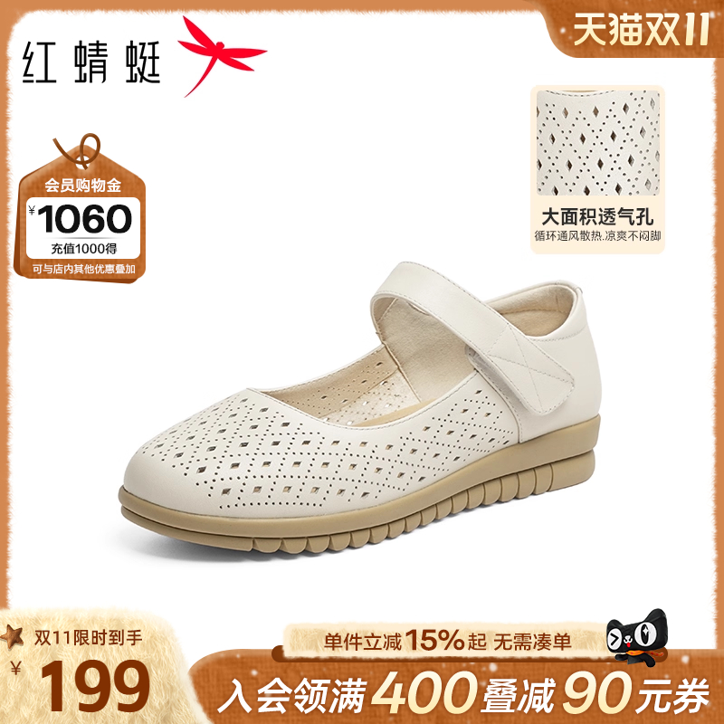 红蜻蜓妈妈鞋夏季女鞋中老年洋气鞋子真皮舒适镂空单鞋老人皮鞋女