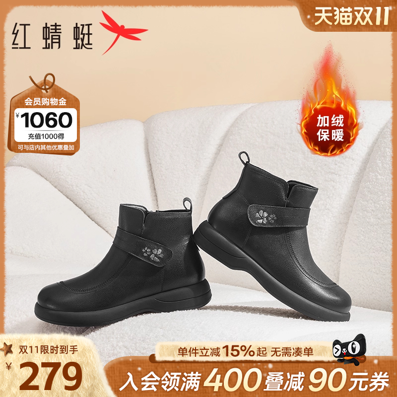 红蜻蜓正品女鞋中年妈妈鞋平底单鞋女软底女鞋老人皮鞋女断码清仓