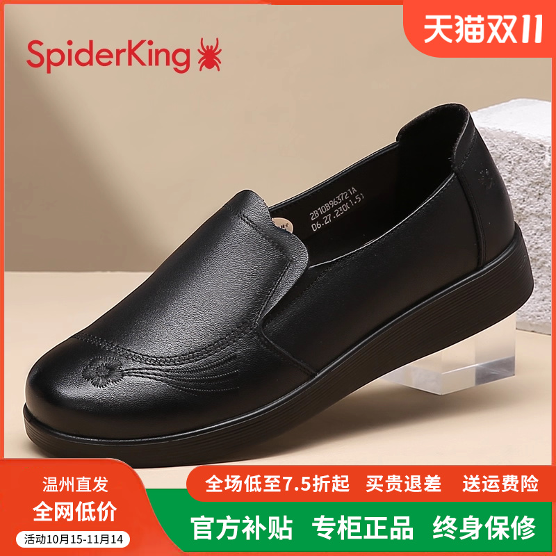 蜘蛛王单鞋女2025春秋新款女鞋真皮平底浅口妈妈鞋休闲老人皮鞋女