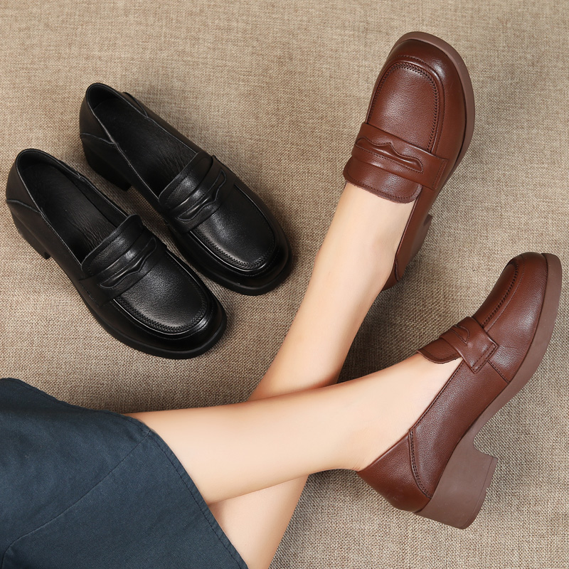 复古女鞋春夏新款妈妈单鞋真皮舒适休闲平底防滑老人皮鞋女软皮底