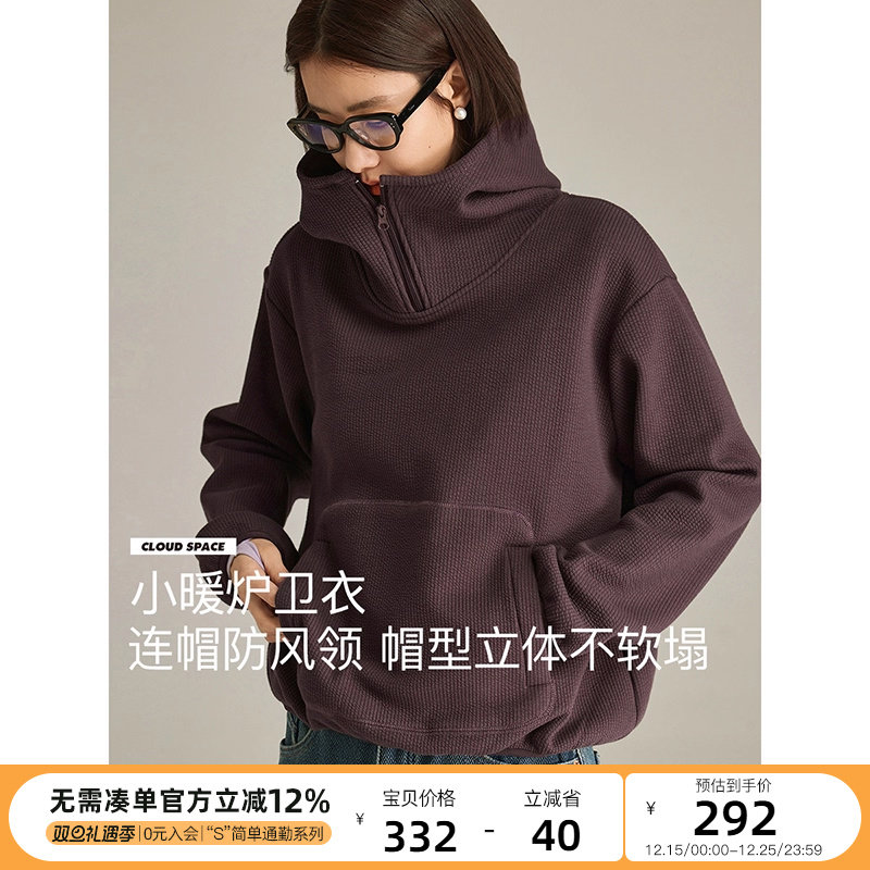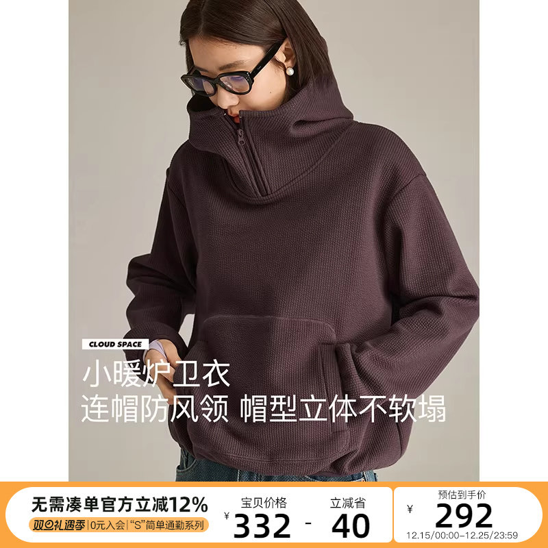 CLOUDSPACE【小暖炉卫衣】复合奥粒绒连帽防风卫衣秋冬季帽衫女