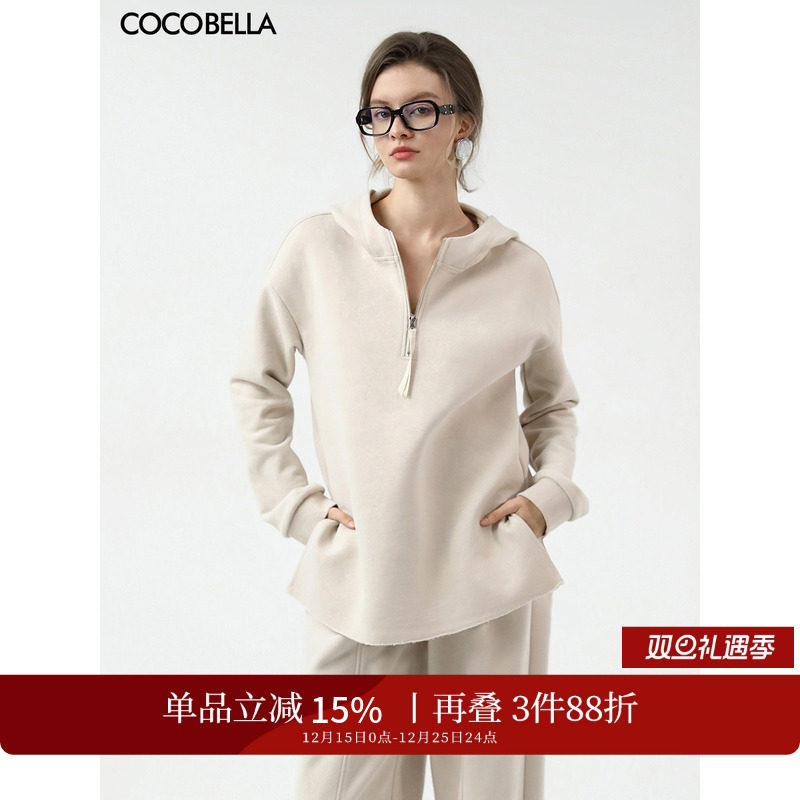 COCOBELLA老钱通勤风连帽衫女舒适自发热抗静电磨毛卫衣SE3015-2