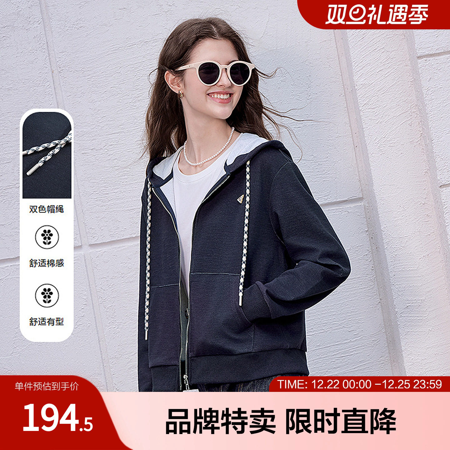 SCULPTOR25年春新款时尚简约纯色全棉连帽衫女上衣运动开衫外套