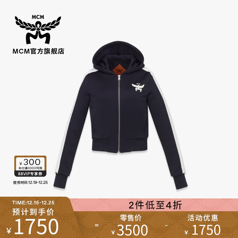 [2件低至4折]MCM ESSENTIAL毛圈棉拉链连帽衫女式外套礼物