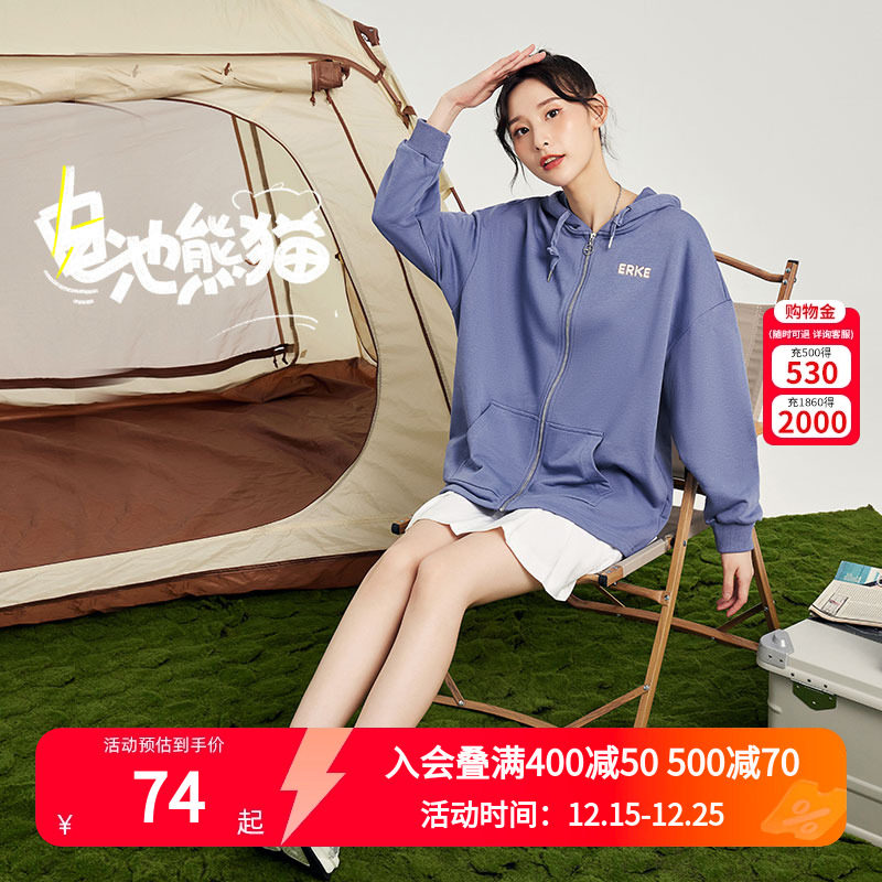 电池熊猫丨鸿星尔克开衫卫衣春秋男女休闲运动针织连帽外套帽衫女