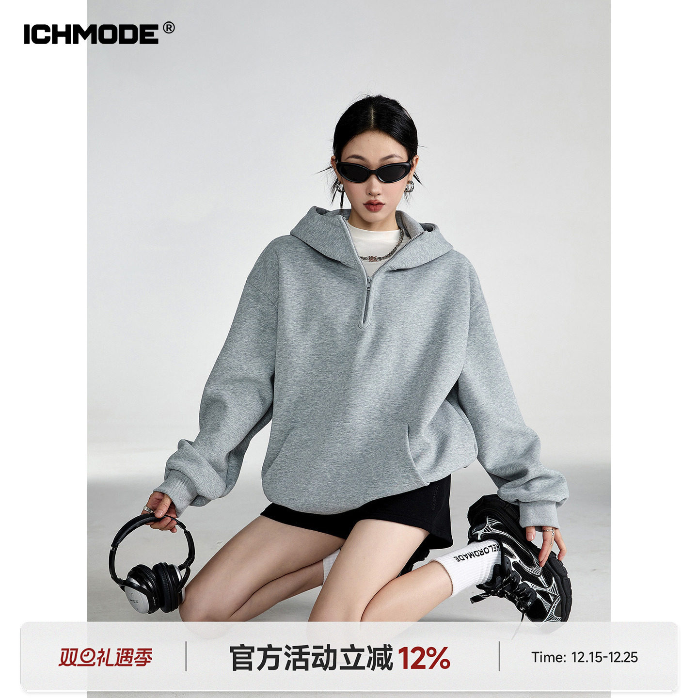 ICH MODE 美式复古重磅连帽卫衣帽衫女春季宽松休闲廓形外套上衣