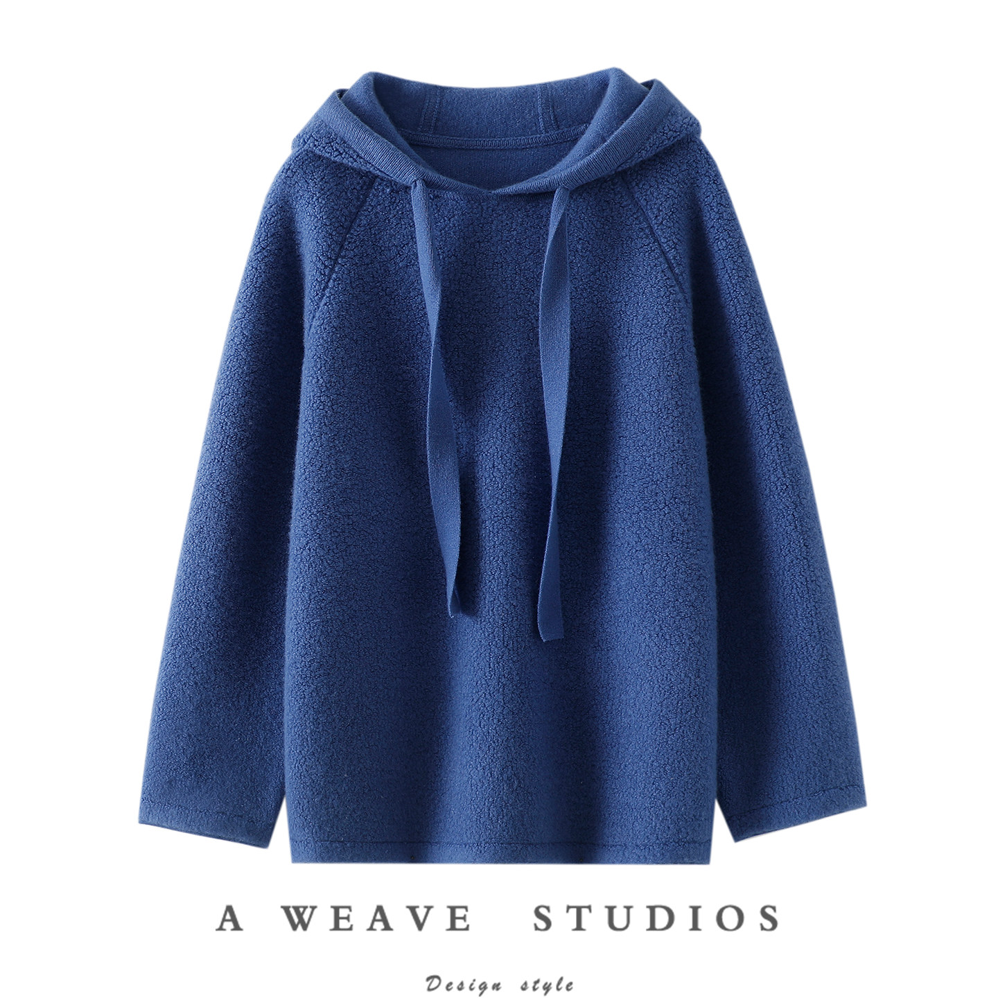 出众迷人!重磅加厚圈圈针100%纯山羊绒帽衫女连帽毛衣宽松新款