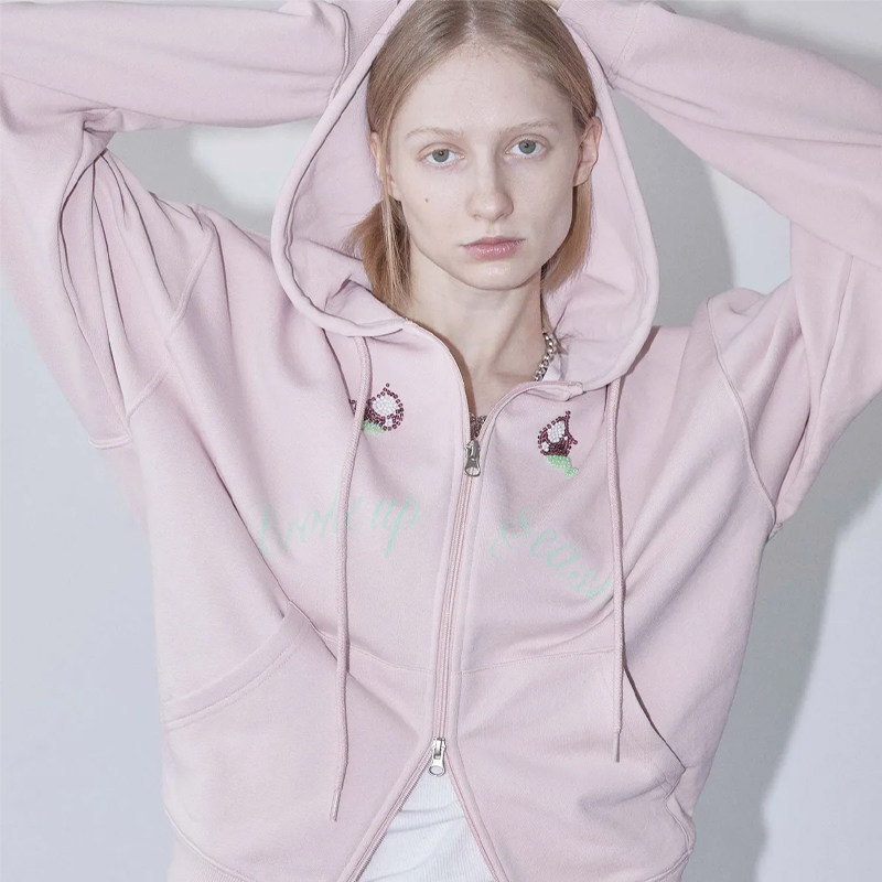 SCULPTOR 25年春季新款纯色卡通字母连帽衫女运动休闲双拉链外套