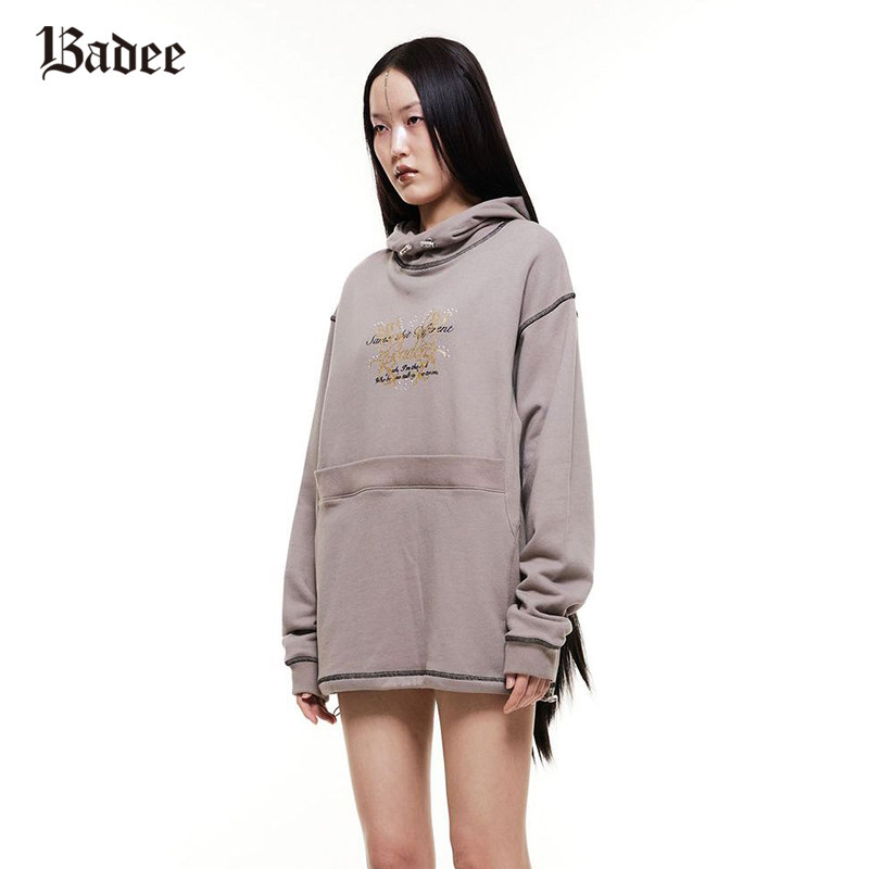 Badee 春季明线亮片镶钻宽松长袖连帽衫女oversize卫衣